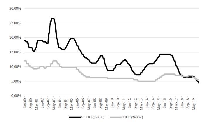 The loss of attractiveness for BNDES operations is closely associated with the relationship between the Brazilian federal funds rate (Selic) and the long-term interest rate (taxa de juros de longo prazo - TJLP), according to those interviewed. As a large part of BNDES operations used the TJLP as their base rate, these credit lines lost space in these companies’ balance sheets, as exemplified below and in Figure 2.