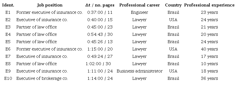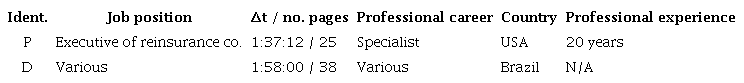 In addition, we obtained secondary data from a lecture held via videoconference in 2016 (1h37min) and a debate held in 2019 (1h45min), both held in São Paulo, with the participation of several professionals involved in the theme. These professionals discussed the SB issues concerning the American and Brazilian markets (Table 4).