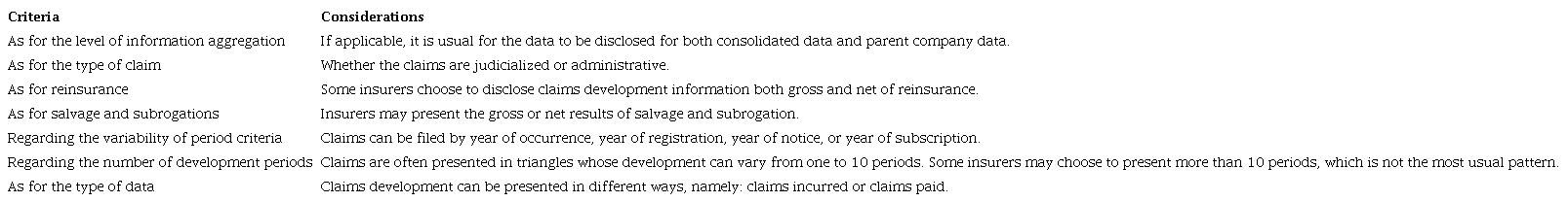 As it turns out, insurers are required to disclose claims developments. In this sense, Caldas et al. (2016) explain that such information should go back to the period of the oldest claim for which there is still uncertainty about the amount and timing of the indemnity payment.