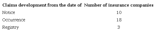 Table 3 shows that of the 31 insurers analyzed, 10 present the development of claims from the year of notification, 18 from the year of occurrence, and three from the year of registration of the claims.
