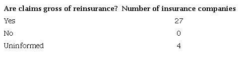 It was also possible to verify that 27 insurers analyzed had gross reinsurance development triangles, so that for four insurers, the explanatory note did not allow identifying whether the data were gross or net of reinsurance.