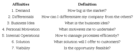 Although it is not the objective of this article to discuss the specific theoretical contributions to entrepreneurship theory, the map presents relevant contributions. Affinities and their cause-and-effect relationships (arrows) demonstrate how entrepreneurs decide to explore opportunities. An opportunity is individualized, it is a significant research gap in the area, pointed out by Wood, McKelvie, and Haynie (2014).