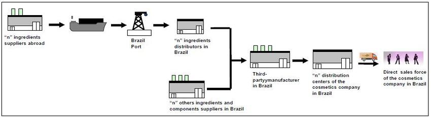 Figure 1, next, shows a simplified depiction of the cosmetics supplies chain with manufacture entrusted to third parties in Brazil.