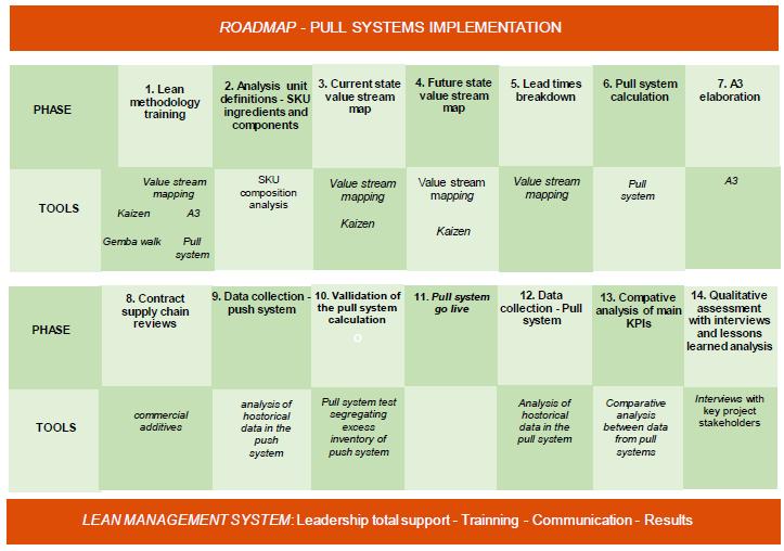 As a contribution to the knowledge base in the operations area, it is worth pointing out that this intervention enabled the authors to suggest a roadmap for the implementation of the pull system based on the action research project’s experience. Figure 18, next, describes the roadmap.