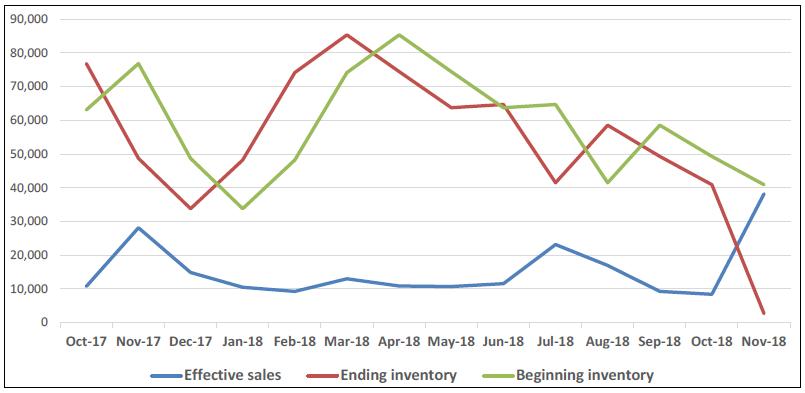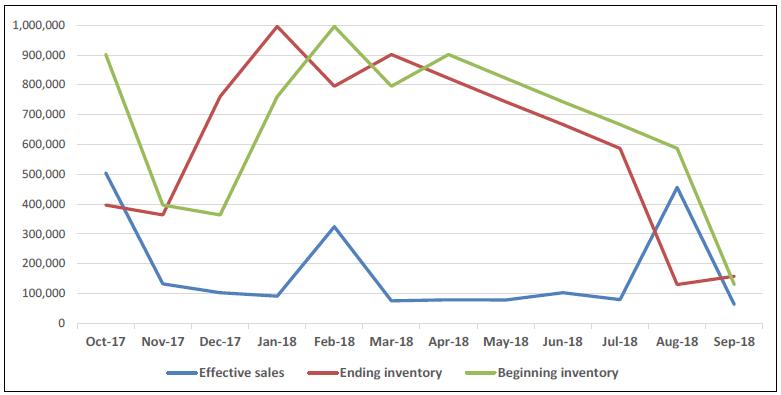 The third-party manufacturer’s average inputs inventory coverage, including ingredients and components, was 2.4 months, that is, average inventories from September 2017 to October 2018 elaborated as inventory months’ coverage.