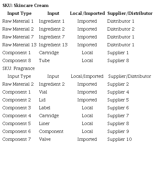 This much anticipation was needed because, upon receiving the order from the cosmetics company, the third-party manufacturer fired off orders for inputs that were often imported, with lead times of up to four months. Aside from the inputs procurement time, the third-party manufacturer needed approximately two months to manufacture the products, bringing the chain’s total lead time to approximately six months.