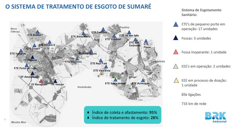 Outro agravante foi o momento político vivido pela companhia. A concessão foi ganha ainda sob o nome da Odebrecht Ambiental, e, devido a escândalos políticos associados à antiga controladora, no início da concessão, não havia capacidade de execução dos investimentos, pelo menos não no ritmo que o sistema de Sumaré demandava.