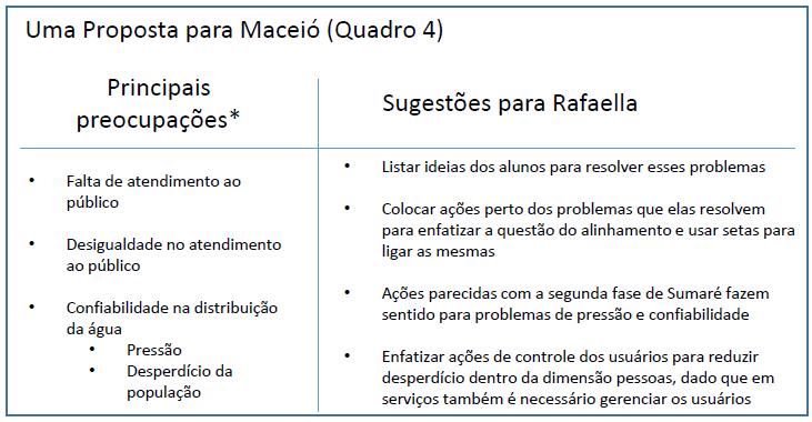 2) Coloque-se na situação da Rafaella e pense em algumas ações que poderiam ajudar a endereçar os aspectos levantados sobre a concessão de Maceió