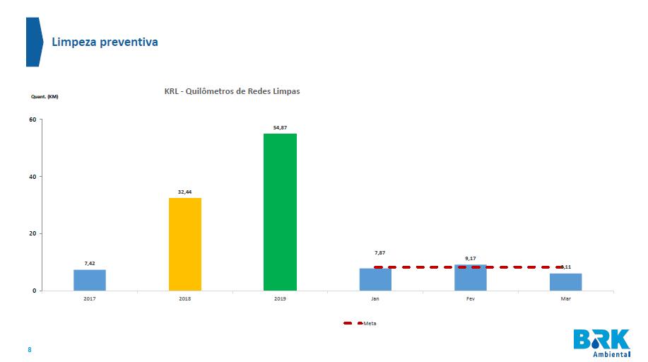 Para ficar mais próxima do objetivo de excelência operacional, a BRK implantou o Programa Criando Valor, do qual faz parte o projeto de produtividade, liderado pela área de planejamento estratégico. O objetivo central desse projeto é identificar oportunidades e implantar ações para reduzir os custos e aumentar a eficiência operacional. Ao longo dos nove anos de operação sob a gestão da Odebrecht Ambiental, as diferentes unidades de negócio foram desenvolvendo formas de prestar os seus serviços, dadas as particularidades encontradas em cada município. O projeto de produtividade visa a identificar essas boas práticas e replicá-las em outras unidades da empresa.