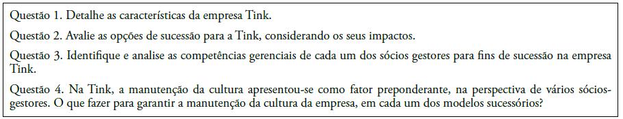 João estava ciente da situação organizacional que simularia, apesar de ainda não ter certeza de como delimitaria o dilema. Durante suas pesquisas, havia observado, nas instruções para autores das revistas, que poderia optar pelo relato de um caso real ou de um caso fictício, baseado em experiências anteriores de consultoria, por exemplo. João tinha contato com algumas empresas e escolheu escrever sobre o caso real de uma empresa em particular, uma indústria de tintas, composta por sete núcleos familiares, da qual tinha acesso fácil aos gestores. Essa empresa estava vivenciando o planejamento do processo de sucessão, que era a situação-problema do qual iria tratar na narrativa. Para tanto, foram coletados dados secundários e públicos disponíveis na internet e em documentos internos da empresa, bem como dados primários, já que João agendara entrevistas individuais com representantes dos núcleos familiares da empresa.