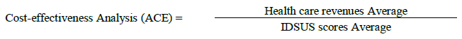 The purpose of using the cost-effectiveness analysis model is justified because it differs from economic evaluations on health care adopted, which states there are two scenarios that need to be compared, computing other economic variables in the analysis. It is possible to say that this model aims to compare the relations between health care revenue and the IDSUS scores, in order to join two distinct databases and generate a consolidated evaluation.