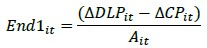 The first variable represents the variation in long-term indebtedness of the firm from a period to other, being measured by the value of net long-term debts of its equity as a percentage of the total assets. This index is named End1it, formalized in (2).
