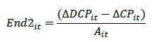 And the third dependent variable in the study represents the variation in total indebtedness of the company from one period to another being calculated by the total equity net accounting debts value as a percentage of the total assets (End3it), formalized (4).