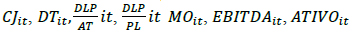 Although the financial literature highlights different determinants of capital structure, the study in question adopts only the determinants that can control the financial conditions of the firms, with the aim of identifying the effects of the credit rating different of any effects of a financial crisis, as defends Kisgen (2006, 2009). Thus, the variables of control (Kit) which are used in the regression equations are the following: