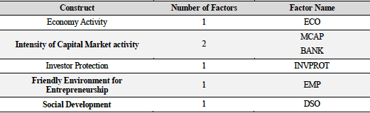 Table 5 below summarizes the number of factors formed in each construct, as well as their names. It is worthy to note that Capital Market was divided in MCAP and BANK.