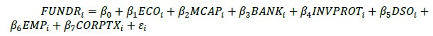 Fundraising (FUNDR): Total funds raised by PE/VC funds coming from investors. Gompers and Lerner (1998) define these resources as the desire of investors to deposit their capital excess in PE / VC funds. Quantitatively, it is measured by the sum of the resources of all resident funds in each country.