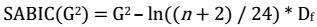 Additionally, Sample-Size Adjusted Bayesian Information (SABIC) is also considered a common information-theoretic criterion index (Beaujean, 2014) and tends to avoid overestimation of the number of extracted classes. This information criterion derived from BIC adjusting the penalty term (Tein, Coxe, & Cham, 2013) as per below: