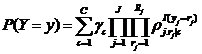 The concepts described above support the expression that generalizes the latent class model, which calculates the probability associated with a particular vector of responses Y = y: