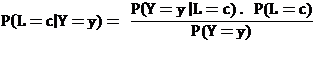 One might also be interested in determining which latent class (c) an individual belongs to based on his/her response pattern y. This probability P(L = c|Y = y), which is termed the posterior or classification probability, is directly related to the concepts of homogeneity and separation mentioned above and can be calculated using Bayes' theorem: