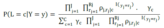 where ρj,rj|c corresponds to the probability associated with the response category rj conditional on membership in class c.