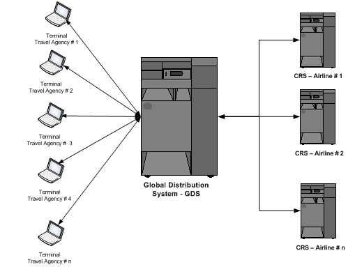 From the travel agency perspective, GDS represented obvious cost savings and productivity increases, and accessing the content of various different airlines from a single terminal was viewed as an important improvement. Connectivity was also established between airline and GDS reservation systems, which resulted in the availability of online information on flights and a dramatic increase in the geographic scope of the market because it eliminated the need to install dedicated terminals worldwide. Figure 1 provides an overview of this environment.