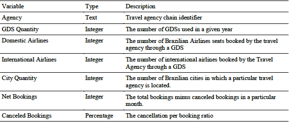 Only points of sale (POS) that reported data for all observed periods were included in the survey. A travel agent might be associated with one or more POS. Because of the disintermediation process, approximately 37% of airline bookings in Brazil are not made through a GDS (Juman, 2011). This detail might bias the classification, particularly in regard to the number of net bookings and cancellations. The collected data were consolidated as displayed in Table 2.
