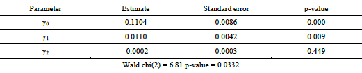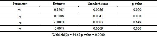 The model represented by equation (6) was therefore estimated with the xtgls specification for heteroskedastic panels, and the results obtained are displayed in Table 4.