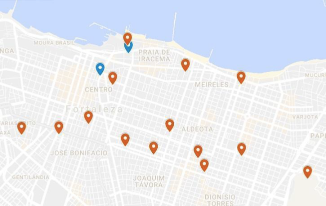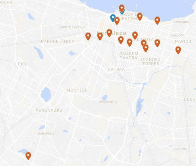 The Firmeza Museum, one of the spaces in a suburb area of the city included and (re)appropriated by the kidnapped arts organization, is an example of the action of that temporal and memorial practice. This museum is considered special by many of the artists, curators and organizers due to its historical legacy (Certeau, 1984; Chartier, 2011; Ipiranga & Lopes, 2017; Vaujany & Vaast, 2014). Two artists that were primordial to the beginning of the April Exhibition used to live and maintain their art workshops there. At the present day, the Firmeza Museum hosts a large collection of archives about the April Exhibition among other artistic installations and objects typical of Northeastern Brazil. Differently from the other spaces, the museum is located in a suburban neighborhood in the city, far from the other venues as we can see in the map below (Figure 3), evidencing the extension of the spatial practice network and its effects on the city organizing.
