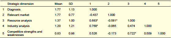 Each reorganization plan was analyzed in depth by the three authors. Two steps were performed. First, the plans were assessed and their content was tabulated in each dimension of the analysis (see Table 4). Then, each dimension was examined separately and ranked on a scale according to plan quality (see Appendix). To build this ranking, each author performed separate assessments of the plans. The final ranking was the average of each individual assessment. The descriptive statistics and correlations of the strategic dimensions are presented in Table 2.