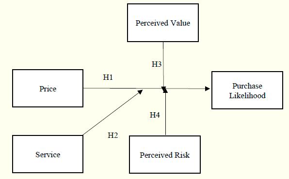 Figure 1 shows our conceptual model that examines the effect of price and service on the purchase likelihood of remanufactured batteries for EVs. Our model also examines the direct and moderating effect of perceived value and perceived risk and their respective hypotheses.