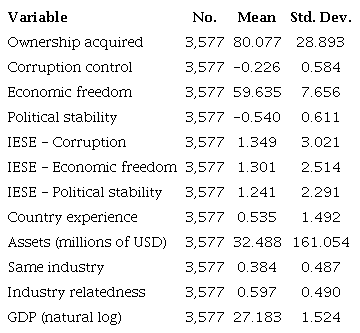 In the second stage, the quartile designation for each institutional variable is used to classify the status of the host country at the time of each respective acquisition. This classification serves to allow for a nuanced understanding of the complexities inherent in the institutional environment in relation to other countries.