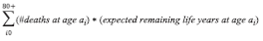 Years of life lost (YLL) is a useful measure to take the age at death as well as the deaths at each age into account. The measure results from the sum of years of potential life lost by individuals in the population because of death by a certain disease, given their remaining life expectancy estimated by age and sex. The average years of life lost (AYLL) is the average number of years of life lost by each person dying from the disease under study.