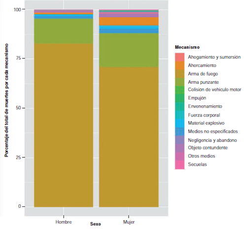Las armas de fuego han sido el principal mecanismo para perpetrar los homicidios, lo cual también coincide con lo hallado en otrosestudios (3,24,25).