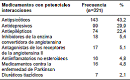 Del total de pacientes del estudio, 28,7 % (n=95) recibía tratamiento solo con carbonato de litio, mientras que 71,3 % (n=236) recibía tratamiento combinado con otros medicamentos estabilizadores del ánimo. El más frecuentemente empleado fue el ácido valproico, seguido de otros psicofármacos como la clozapina y la sertralina (cuadro 1).