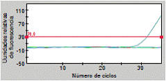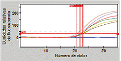 Las lecturas de fluorescencia de los controles positivos se hicieron después de la amplificación y se registraron los valores de ciclo umbral correspondientes a su positividad.