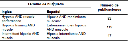 A partir del número total de publicaciones encontradas con los términos de búsqueda (cuadro 2), se seleccionaron 37 tras la aplicación de los criterios de inclusión: artículos relacionados con el entrenamiento en hipoxia, estudios específicos sobre el músculo esquelético y sobre la actividad física o deportiva, y de los criterios de exclusión: artículos relacionados con enfermedades que no fueran musculares y estudios que no se referían al músculo. Estos criterios se emplearon para analizar los documentos más relevantes por su pertinencia temática dada la abundancia de manuscritos que incluyen los términos hipoxia y músculo.