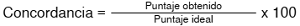 Posteriormente, se obtuvo el puntaje de concordancia de cada muestra, para luego aplicar la fórmula general de concordancia. Se estimó como puntaje satisfactorio uno de 80 % o más muestras concordantes con las del evaluador.