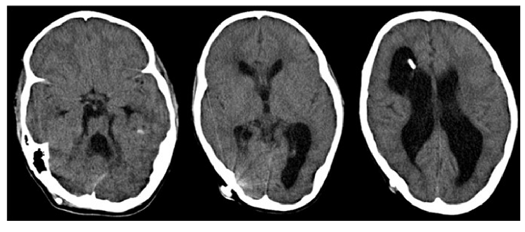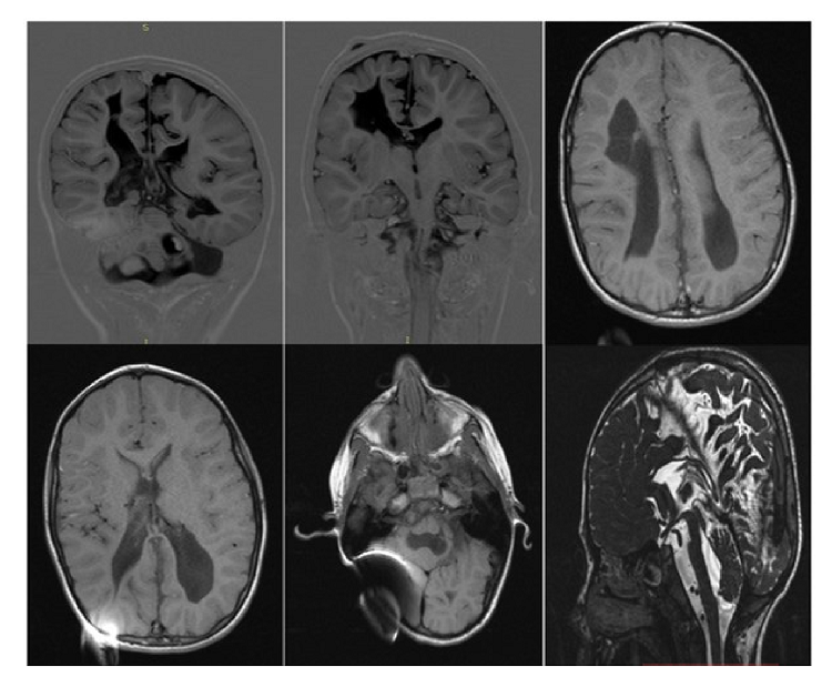 Un año después del tercer episodio, la niña acudió a consulta de neurooftalmología. En el examen se reportó gran ventriculomegalia sin edema transependimario.