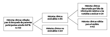 El estudio RATTA (Research about Tropical Trends in Asthma) contó con 150 pacientes. Se hizo una revisión de las historias clínicas que cumplían con los criterios establecidos; se encontraron 86 historias evaluables, de las cuales 24 no tenían datos de espirometría ni número mínimo de dosis deinmunoterapia. Es decir, 62 cumplían con los criterios mencionados y eran evaluables (figura 1), por lo que se les invitó a formar parte del estudio mediante llamadas telefónicas y se evaluó su estado de salud en el momento del estudio. Se excluyeron los pacientes con otras enfermedades pulmonares y quienes no cumplían con los requisitos mencionados. Se excluyeron los pacientes con otras enfermedades pulmonares y quienes no cumplían con los requisitos mencionados. A todos los participantes se les explicaron los riesgos y beneficios, se les pidió el consentimiento informado y sus respuestas al cuestionario modificado y abreviado del Departamento Administrativo Nacional de Estadísticas (DANE) para obtener información sobre las condiciones de la vivienda y la interacción con factores como el tabaquismo. Se midió la talla, el peso y se calculó el índice de masa corporal (IMC).