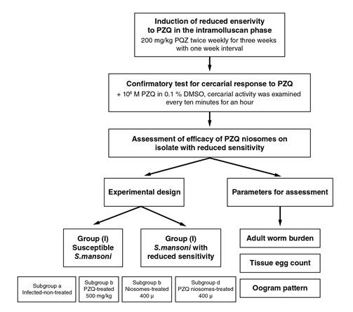 Conclusion: PZQ-encapsulated niosomes restored the drug sensitivity against laboratory- induced S. mansoni adult worms with reduced sensitivity to PZQ.