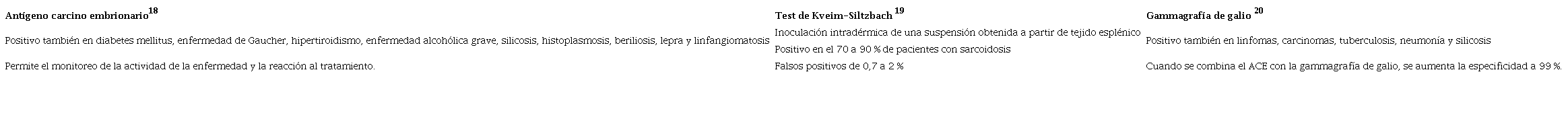 Otra dificultad del diagnóstico de los granulomas por cuerpo extraño es la descripción histopatológica del ‘tipo sarcoideo’. En algunos estudios, se ha determinado que la diferenciación entre la sarcoidosis y una reacción de tipo sarcoideo se basa en el perfil de riesgo genético e inmunológico del paciente frente al desarrollo de la sarcoidosis 13,14. Por lo tanto, todo reporte histopatológico de una reacción de tipo sarcoideo obliga al médico a descartar una sarcoidosis sistémica, la cual se puede presentar incluso años después de una reacción sarcoideo. Aunque no existen exámenes de laboratorio específicos que permitan descartar sarcoidosis, algunos de ellos son útiles para su diferenciación 18 (cuadro 2).