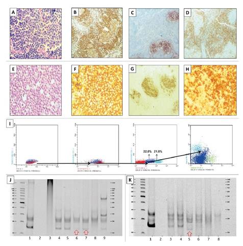 Palabras clave: linfoma, reordenamiento génico de linfocito T, inmunoglobulinas, genes codificadores de los receptores de linfocitos T, electroforesis en gel de poliacrilamida..