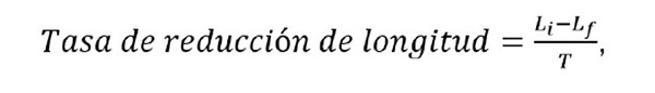 donde Li es la longitud inicial de la herida y Lf es su longitud al final del estudio (expresadas en mm), y T es la duración del estudio expresada en días.