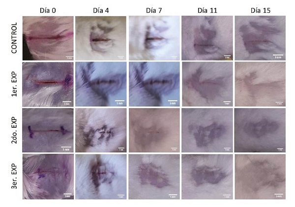 El tiempo de curación se calculó desde el primer día de experimentación hasta la cicatrización total de cada herida.