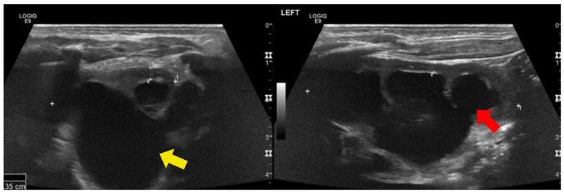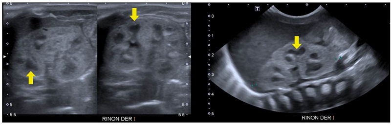 Una vez confirmado que se trata de quistes, es importante determinar la edad de presentación de las lesiones. Su presentación prenatal, si es unilateral, es sugestiva de riñón multiquístico. En este caso, se espera que el riñón tenga una tendencia a la hipoplasia y disminución progresiva de su tamaño.