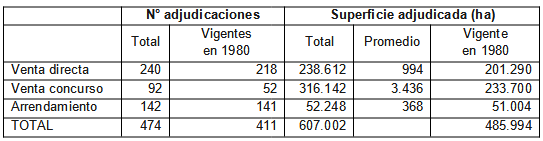 Entre 1976 y 1980 se adjudicaron 607.000 ha, aunque luego una parte de esas concesiones caducaron (Beck, 1992b; Borrini y Schaller, 1981). El 80 % de los beneficiarios fueron pobladores de la zona que recibieron por venta directa y arrendamiento el 48 % de la superficie. La menor proporción adjudicada evidencia la diversidad de situaciones dentro de este grupo. En las zonas más cercanas a las colonias predominaban los pequeños y medianos productores agrícolo-ganaderos. En áreas situadas en el interior de El Impenetrable había ocupantes al frente de explotaciones que se asimilaban al modelo ganadero-forestal promovido por el gobierno. En lo que se refiere a las ventas por concurso, la unidad de adjudicación era mucho mayor, en consonancia con el tipo de empresa capitalizada que se quería implantar. Sin embargo, el desarrollo de esta actividad se veía limitado por la baja rentabilidad inicial y el desconocimiento de las condiciones del terreno. Por ello, una alta proporción de los inversores extrarregionales optó por rescindir sus contratos. Debe señalarse, no obstante, que si bien la “Campaña del Oeste” no cumplió las expectativas oficiales, la privatización en la región continuó regularmente durante las décadas de 1980 y 1990.