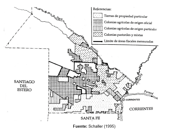 La primera etapa de la política oficial estuvo presidida por la ley 817 de 1876, que buscaba promover la creación de colonias agrícolas a través de la acción oficial o mediante la concesión de tierras a particulares (Slutzky, 2014). El organismo de ejecución era la Dirección de Tierras. En ese momento, la rudimentaria estructura de la repartición no estaba en condiciones de controlar el acaparamiento que generó la entrega masiva de concesiones para colonizar y de otras adjudicaciones. De esta manera, al finalizar el siglo XIX se habían transferido casi 2.500.000 ha a medio centenar de propietarios. No obstante, un contingente de población se asentó en la periferia oriental del Territorio, en colonias creadas por el gobierno (Resistencia, Puerto Bermejo) o por empresarios particulares.