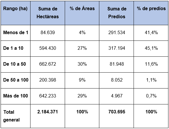 En estudios más recientes se continúa afirmando que los procesos de distribución de la tierra están congelados y que, por el contrario, la concentración sigue aumentando, en donde el 3% del total de los propietarios ocupaban el 78% del total de la tierra rural distribuida en predios de más de 100 hectáreas y en predios de menos de 10 hectáreas, el 85,5% del total de los propietarios solo ocupaban el 7% del total de la tierra (Pachón, 2021).