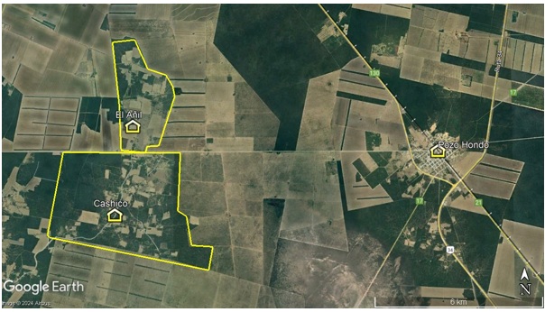 Las comunidades de Cashico y El Añil, no son ajenas a las desigualdades y conflictos que se observan en la escala departamental. Estas localidades se encuentran aproximadamente a 11 km. de Pozo Hondo, que es la cabecera del departamento (Figura 2). Están compuestas por familias campesinas que permanecen en un hábitat disperso con bosque nativo altamente fragmentado por la actividad agrícola intensiva. Este territorio se caracteriza por la permanencia de bosques nativos, ambiente al cual se asocian los usos individuales y comunitarios de los bienes naturales por parte de la comunidad, donde prevalecen bosques degradados, cuya vegetación se encuentra representada por especies primarias (quebrachos), secundarias (algarrobos, talas, tuscas), arbustos (garabatos, palo azul, palmas) y herbáceas. Asimismo, el ambiente tiene una abundancia de aguas subterráneas, constituyendo la principal fuente de agua de consumo humano y animal (Garay y Ledesma, 2024).