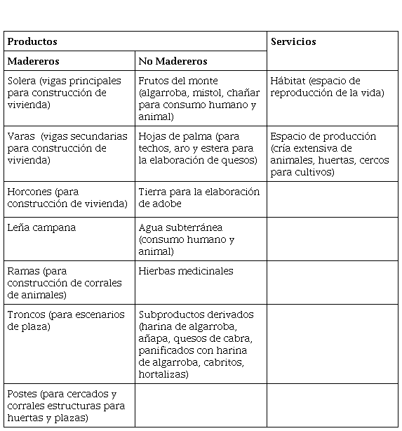 Así, existen un conjunto de productos y servicios derivados del uso del monte (Tabla 2) que fueron identificados en la producción del hábitat de estas comunidades (Garay y Ledesma, 2024), específicamente respecto a la construcción de espacios arquitectónicos como la vivienda y corrales, y al trabajo. A partir de los mismos, las comunidades generaron proyectos para disputar material y simbólicamente el acceso a los mercados básicos, poniendo en valor sus conocimientos que han sido sistemáticamente desvalorizados y deslegitimados por el capital y por el mismo Estado a través de la implementación de políticas públicas.